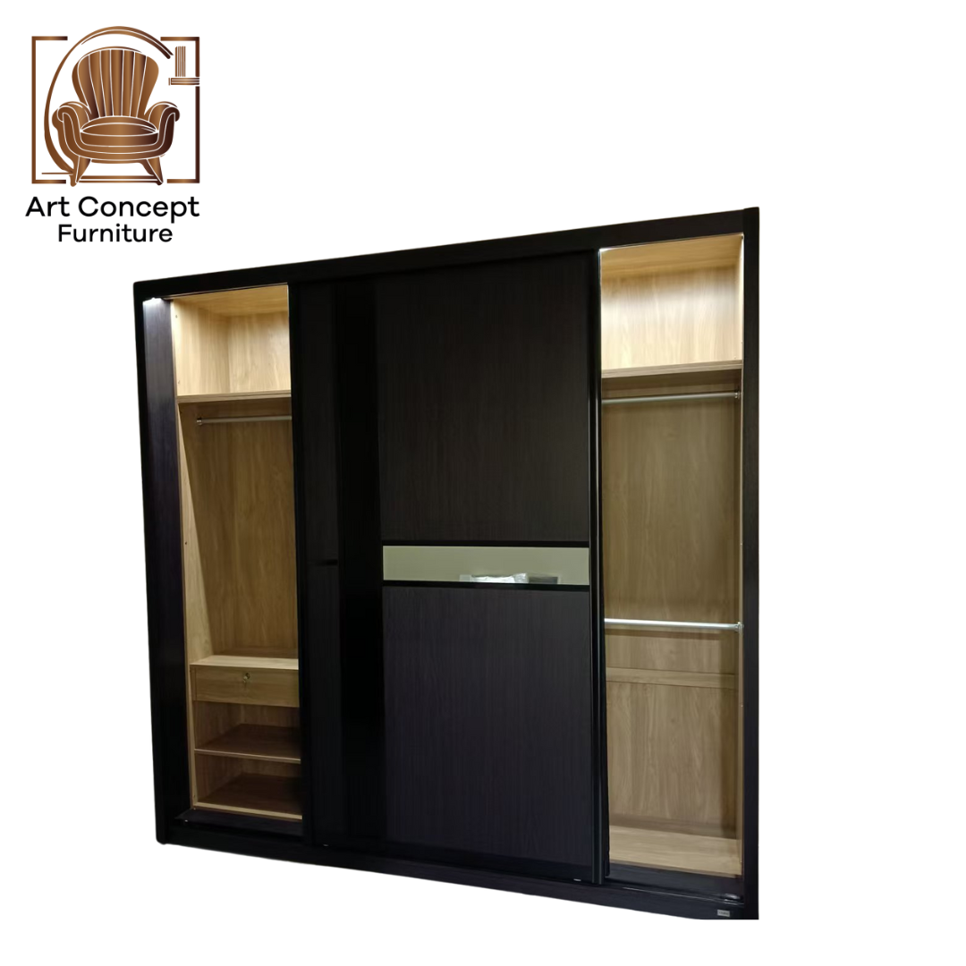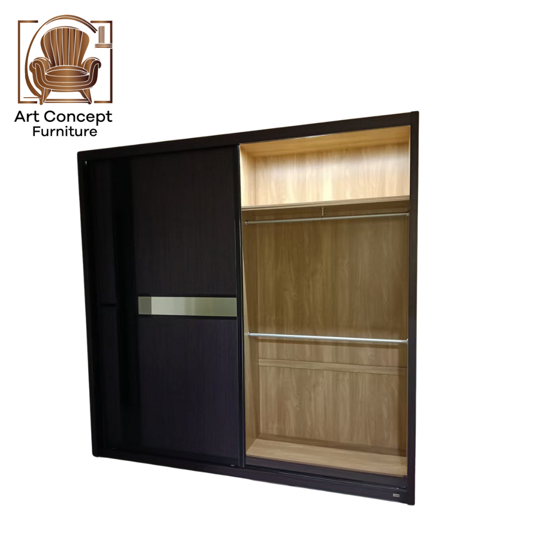 With internal hanging rods, storage shelves, and a clean contemporary finish, it’s designed for maximum storage without taking up extra space. Smooth sliding tracks ensure quiet and easy operation every day.